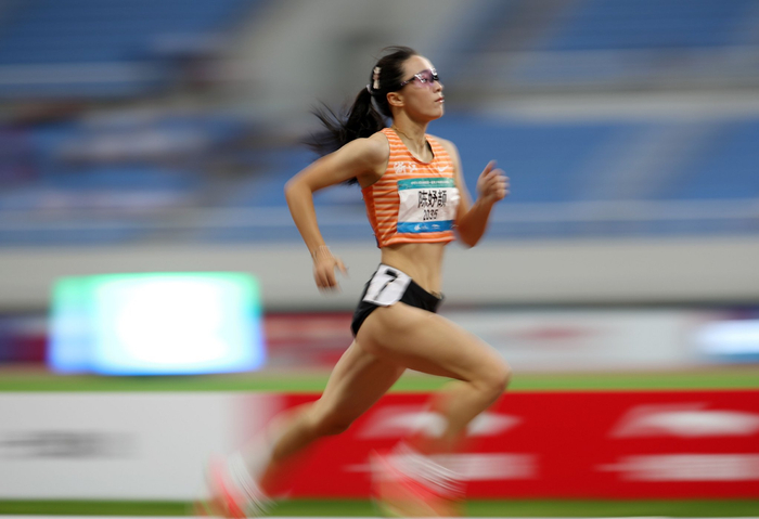 8月13日,陈妤颉在第一届全国青少年田径运动会的女子200米比赛中。新华社记者 李钢 摄